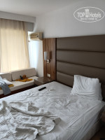 В отель прибыл около 11 утра и без всяких намеков дали номер на четвертом этаже над центральным входом,номер не новый ,как и сам отель ,но мебель свежая.