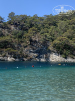 Само место просто чудесное - территория зелёная, красивая, ухоженная. До пляжа идти (если от номера и не спеша), то минут 7-10. У отеля есть часть огороженная на общественном пляже - песочек, потом часть дочтаточно крупной т болезненной гальки, а вход - мелкие-мелкие камушки (которые легко вытряхиваются из детских трусов))) Лежаков хватает, если приходить до 10-10.30, потом всё занято. На пляже дежурит мальчик, который помогает вкопать зонтик, подтащить лежаки. Лежаки и иатрасы тоже достаточно старые, но вроде бы все рабочие. Полотенца для плажа можно брать в СПА, возвращать туда же. Море здесь невероятное - я никогда не видела такого красивого цвета воды! Лазурная! Причем даже когда на море сильные-сильные волны - она всё равно такая! Невероятно. Ещё мы были в Голубой лагуне - не впечатлило совсем.