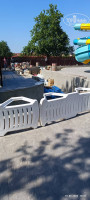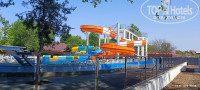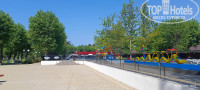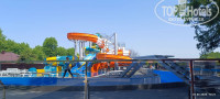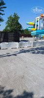 Еще сайт нам обещает «Новый Аквапарк площадью более 5000 кв. метров с кольцевым бассейном "Ленивая река" протяженностью более 230 метров и спокойным течением, а также зоной детских и взрослых горок высотой более 8 метром и длиной 70 метров, спрей-парк для детей.» Да, аквапарк есть. Точнее его строили активно, когда мы заехали и 01.06 было неофициальное открытие. Пригласили блогерку, которая притащила двух детей, и снимала их радостно, как они резвятся в детской части аквапарка с детскими горками, а рядом в это время суровый мужики пилят болгаркой что-то внутри канала, который как раз достраивался (по нему потом пустили воду). И я, проходя мимо вижу картину: В воде резвятся дети, их снимает блогерка, в 50 см. от воды лежит электрическая розетка на гибком шнуре, от нее в канал идет шнур к болгарке, которой пилит мужик. Электричество и вода, что может произойти, верно ведь? Именно такое мнение я и выразил, слава богу ничего не произошло и это все потом убрали. Насколько я понимаю, открытие такого аквапарка должно сопровождаться приемной комиссией, но по моему ее не было.