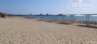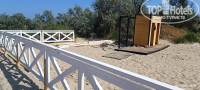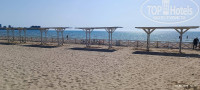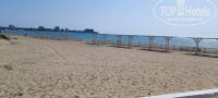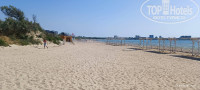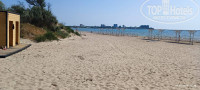 "ПЛЯЖ У отеля имеется собственная зона песчаного пляжа, расположенная в 150 м. от отеля. Ширина пляжа составляет более 130 метров. Проход к пляжу оборудован деревянными дорожками. На пляже имеются шезлонги, теневые навесы, детская зона, волейбольная площадка, душ/туалет/место для курения, а также проводятся анимационные мероприятия. Имеется спасательный и медицинский пост." Вещает нам бодро сайт отеля. Пляж у отеля есть, до него нужно перейти дорогу и он располагается не далеко. НО! Мы заехали 29.05 и до 03.06 ни шезлонгов, ни навесов ни тем более деревянных дорожек там не было. Их только начали возводить 01.06. И до сих пор возводят. То есть вы приехали на море, полежать на шезлонге под навесом, попить и поесть вкусняшки на берегу моря, и это вам гордо обещал сайт отеля, НО! сайт наврал (какая неожиданность). Мало того, на этом участке пляжа стоит табличка: «Купаться запрещено!» Кого это остановит, верно ведь? На ресепшене девочки говорили, что все будет, "..но вы наверное уже уедете". Я лично тогда перешел на ультразвук. И, благодаря, наверное, моему ультразвуку и чуду только 03.06 они смогли возвести навесы и поставить 5 шезлонгов. А уж детские зоны, души, туалеты, переодевалки и пост со спасателем они поставят как-нибудь потом, году этак в 2325. Само море, как собственно везде в Анапе не очень- мелко, песок (что хорошо для детей) и много водорослей. Очень много водорослей. Заходишь подальше, там более менее ок.
