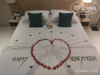 Особо хочется выразить благодарность сотруднику отеля Arezul ! На следующий день после заселения, наш номер был украшен - Happy Honeymoon! На юбилей жены тоже украсили номер, Arezul добавил розочку из пальмовых листьев. А вечером, сотрудники в главном ресторане, поздравили с Днём рождения, принесли очень вкусный торт!