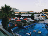 Бассейн находится посередина территории. Людей было слишком много - лежаков не хватало. До моря идти по большой территории, жарко.