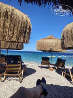 После того как расположились пошли изучать территорию отеля, изначально думали что тут можно заблудиться, но очень быстро привыкли к архитектуре и потеряться так и не удалось)) этажом ниже нас был бассейн и бар у бассейна, бассейн с двумя небольшими горками, сразу у бассейна находится зона где проходят вечерние программы со сценой и вечерним баром. Скажу сразу из нашего номера было слышно так программу, что можно на нее не ходить и слышно и частично видно))) Но программа идет до 23:00 так что нам это не доставляло хлопот абсолютно. Что бы попасть на пляж нужно было спустится на лифте на первый этаж, и изначально вы попадете на бассейн "голубая лагуна" рядом с ним нет бара, на нем гораздо меньше людей и он окружен хвойными деревьями по периметру - своеобразный лакшери. к пляжу нужно спуститься чуть вниз по асфальтированным дорожкам по тенистой алее на которой установлены кабинки-бунгало с двуспальными лежаками и столиками за шторками - они тоже абсолютно бесплатны и почти всегда там есть хотя бы одна пустая кабинка где при желании вы можете разместится. Прямо вниз будет большой деревянный пирс с огромным гамаком сеткой над морем, а так же лежаки с зонтиками возле него, вправо будет бар у пляжа со столиками под деревьями и пляж у кромки воды с входом по пластиковому понтону, а некоторые заходят и без понтона, кто в каралках кто без.... Но там реально не галька, а галина)))) Но за счет этого чистейшая вода и интересный подводный мир, взял с собой маску для сноркелинга и ничуть не пожалел. Свободные лежаки на море всегда есть и это не смотря на заселение почти в 100%. У бассейна где бар европейцы забивают места с самого утра, у бассейна "голубая лагуна" место всегда можно найти... Но мы не очень понимаем кайф купаться в бассиках глубиной 1,4 метра, да и ехали за морем, так что попробовали буквально бассейны пару раз) На полотенца нет карт и записей, они находятся у моря за баром и у бассейна на 4 этаже в свободном доступе, подходи и бери. Очень понравилось что на пляже есть два бара самообслуживания в первом (у деревянного пирса) кофемашина и холодильник с водой, пивом и айраном - захотел попить, подошел и взял или налил, во втором что находится у кромки воды вина (красное, белое и розовое) во льду, пиво из крана и так же вода, айран в холодильнике. Это очень удобно, так как не создает очереди на баре у пляжа, люди которым нужно пиво, вода или кофе не стоят в очереди, и к барменам подходят только за коктейлями или чем покрепче. Так же у бара на пляже стоит ларь с мороженым в заводской упаковке, подошел открыл и взял, ни у кого ничего просить не надо.