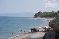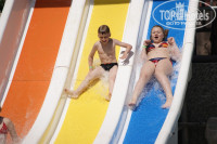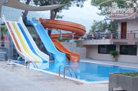 Теперь об отеле. Собственно на территории отеля расположены 4 корпуса (A,B,C,D) А у дороги, D у моря. Ресепшн в корпусе B. Ресторан в D. На территории два бассейна, один из них с горками (D) работают утром с 11 и к вечеру с 16, по 1,2-2 часа. Второй бассейн на площадке перед рестораном. Пляж галечный, пластиковые лежаки и матрасы в наличии, в принципе их всегда хватало. Водные развлечения тут же, парашют, скутер, водные лыжи, плюшки и банан, ценник на это совсем не гуманный как и везде.