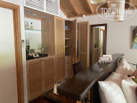 Мы разместились в О бич вилле. Сама вилла просто прекрасная - просторная, огромная кровать, терраса, вид на море. В номере есть халаты, дождевики, зонтики. Убираются дважды - после завтрака и готовят номер ко сну. Перед домиком лежаки, которые только ваши. Ощущение уединенности и релакса. Кстати, в зоне О репорт размещение только 12+, для кого-то это важный момент)