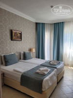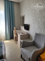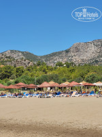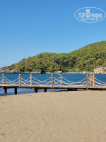 Заселение в номер производят строго после 14.00 (прибыли в 9.00), доступ ко всем остальным услугам сразу по приезду. Русскоговорящего персонала нет, общаются на английском, но очень доброжелательны. Среди отдыхающих много русскоязычных и турков. Номер 513 стандартный, чистый, уютный. Вид на горы и бассейн. В номере ловит wi-fi. Сейф в номере бесплатный, но кодовый замок сломан, закрывается просто на ключ. Проблема с водой - напор воды постоянно меняется, то очень сильный, то чуть идет. Питьевая вода бутылированная 0,5 всегда доступна в баре отеля и на пляже. Холл около ресепшен очень душный, но есть отличный холл с диванами и телевизором рядом с баром и рестораном, где комфортно. В ресторане посадочных мест всегда хватает. Порадовала рыба в ассортименте - скумбрия, форель, сибас, дорада. Мясо индейка, курица, говядина и один день даже баранина. Из гарниров, кроме традиционных были цветная капуста, брокколи, брюссельская. Кофе капучино лучше брать в баре рядом с рестораном (в ресторане видимо кофе машина не очень хорошо настроена). Из фруктов арбузы, дыни, яблоки, апельсины. Единственный минус это мухи, которые постоянно наровят сесть на еду. Уборка в номере ежедневная со сменой полотенец. Отель позиционирует себя для спокойного уединенного отдыха, поэтому никакой анимации здесь нет. Во время ужина включают ненавязчивую музыку. На территории отеля есть смотровая площадка с видом на море, а также ресторан панорама с замечательным видом на море. Дорога до пляжа составляет не заявленный 1 км, а почти 2 км, т.к на напрямую, а по серпантину (достаточно крутому), потом вдоль трассы, идти минут 20- 25. Конечно лучше пользоваться шаттлом, но если на пляж хочется попасть после 15.00 приходится идти пешком, обратно последний шаттл в 18.00. Море и пляж замечательные!!!! Чисто, просторно, шезлонги всегда есть свободные. На ресепшн можно под депозит 10$ взять пляжное полотенце. Пляж песчаный, никаких прибиваемых водорослей. Вход в море плавный, можно поплавать там где глубоко, а ближе к буйкам снова можно достать до дна, так что поплыв до буйков можно передохнуть. На пляже также работает бар, вода , пиво, кола в свободном доступе. В 1 км от пляжа отеля слева можно дойти по песчанному пляжу до какой то впадающей речки. Есть прокат сап бордов, парусников, можно покататься на водных лыжах. Но все это отдалённо и не мешает спокойно плавать. Это место пользуется спросом у турков, которые приезжают сюда на машинах, въезд для машин в пляжно парковую зону платный и вход тоже, но для гостей отелей по браслетам бесплатно. Но места оооочень много, поэтому наличие местных жителей приехавших искупаться не мешает.