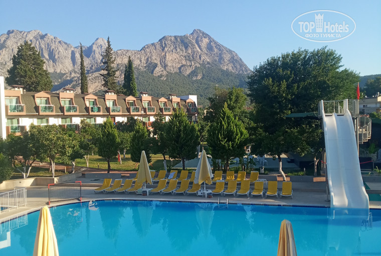 Территория отеля небольшая, но очень уютная, чистая, ухоженная. Повсюду апельсиновые деревья. Есть детская площадка, тренажеры ( подуставшие), стол для тенниса, баскетбольное кольцо, сцена. Всегда чистый бассейн. Номер был хороший, вид из номера СУПЕР - на бассейн и горы!!!! Были в номере и минусы - не закрывалась на защёлку дверь на балкон ( обещали починить, но не починили), ванная комната не первой свежести, но все работало. Это всё мелочи. Питание хорошее. Лобстеров и кальмаров нет, но выбор большой, мяса достаточно, если заканчивается, тут же дополняют. Хоть людей было много, но очередей за едой не было, так как ассортимент еды большой и люди рассасывались в разные зоны, в связи с предпочтениями. Между основными приемами пищи в баре предлагают кексы и печенье, лепешки типа пиццы, вечером на гратаре жарят мясо и овощи. Но нет мороженого!!! Отель находится далековато от моря, но есть бесплатный трансфер от отеля, на котором довозят до пляжа за 1 минуту. Из персонала мало кто знает русский язык ( и английский тоже). Отдыхют в основном местные, которые ( почему-то) не ходят на пляж, а сидят у бассейна, поэтому на пляже много свободных лежаков. Пляж от отеля небольшой, песок с галькой, но можно спокойно заходить без специальной обуви. Вывод: отдыхом остались довольны!!! Слышали, что у отеля поменялся хозяин и он изменился в лучшую сторону.