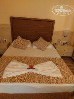Нам предоставили браслеты и сказали, что номер будет готов не раньше 14ч. Заселили в семейный номер ровно в 14ч, на 1 этаже как мы и просили. До ресторана идти минуты 3, до моря 10 минут неспешным шагом. Номер староват, подушки твердые, бывают муравьи, но в общем неплохой, есть мини-кухня. Конечно, пора уже обновлять номерной фонд, но мы знали куда летим.