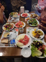 Еда в отеле: простая, понятная: салатные листы, зелень, помидоры, огурцы, сыр, рис, картофель, супы, свежеиспеченный хлебушек.