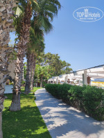 Мы купили тур у Библиоглобус через 99 евро. Нам полагался номер в корпусе Garden Rooms. Для понимания: есть основной корпус, в который вы попадаете с улицы, на ресепшн, далее по лестнице вниз и вот вы смотрите на малоэтажное здание (не помню, 3 этажа вроде). Таких корпуса (здания Garden) два - они разделены бассейном с детскими горками. Мы жили во втором - дальнем корпусе, который уже через забор граничит с другим отелем. Вся территория довольна небольшая, от номера до моря идти было меньше 5 минут - это один из основных плюсов этого отеля.