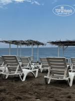 Пляж находиться в километре, людей мало, всегда есть места на шезлонгах.