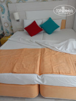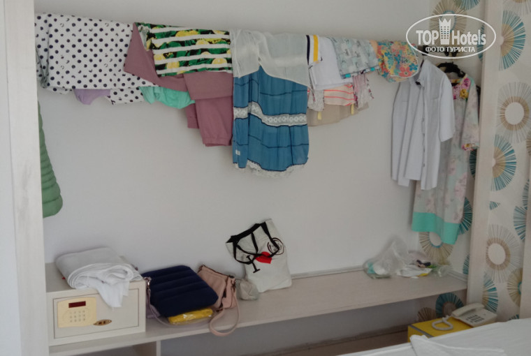 Заселение четко в 14-00. У нас был ночной перелет и в 8-00 утра, мы были в отеле. Чемоданы поставили в комнатушку, возле ресепшен. 6-00 часов в подвешенном состоянии.Конечно, можно сходить на море. Вопрос: где переодеться и оставить документы??? Заселение разочаровало полностью. Нигде и никогда я не видела номера без шкафа, просто штангу, типа сюда вешайте. Нас было двое, я и подруга. За ранее просили две раздельные кровати. Номер дали с одной двухспальной кроватью, но простите мы подруги! Ориентация у нас правильная. Номер выходил на улицу, не во внутреннюю территорию отеля. Это ужас, кошмар!По ночам собаки лают, воют.К утру начинает работать кухня и оборудование установленное на крыше начинает работать.И начинается шум: рычать, гудеть и т.д. Кухня хорошая, голодными НЕ были. Фрукты: арбуз, дыня, яблоки, груши, слива. Десерты всякие, много. Сыров много разновидностей. На ужин мясных блюд разнообразие:шашлык,цыпленок на углях, мясо на углях и т.д.Рыба тоже есть.Зелени много,овощи т.д., и т.п.Кухонные работники стараются,молодцы!Персонал приветливый!Вся фишка и изюминка отеля это бассейн.Народ весь тусит возле бассейна.Нас интересовало море.Идти до пляжа 10мин. или ходит автобус(бесплатно от отеля, по расписанию).Вот море это главный плюс!Море прекрасное, вода замечательная,пляж песчаный.Пляж не такой,как на картинке.Похож на дикий,ресторан имеется,душ есть.Для нас море компенсировала все разочарования.