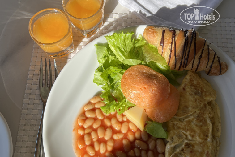 У нас было питание трёхразовое на завтрак можно брать любые напитки: чай, кофе, вода, молоко, бывали фреши арбузные, соки. На обед всегда вода в ресторане и на ужин тоже. Алкоголь брали пару раз бокал вина со всеми налогами выходило около 12 $.