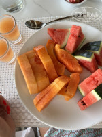 Из фруктов - арбузы, папайя, дыни, ананас, карамболь, яблоки, апельсины.