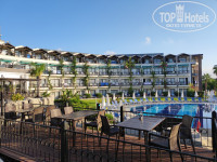 Территория у отеля небольшая - основной бассейн между зданием отеля и пляжем и еще зона, где располагается второй бассейн и водные горки, а также амфитеатр, ресторан а-ля-карт и площадка со столами-стульями для вечерних посиделок во время шоу (и тут же бар, работающий только вечером).