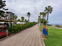 Отдельно расскажу про окрестности отеля, поскольку для меня это важно. Никогда не выбираю отели, из которых некуда выйти, кроме как в чистое поле или на трассу. В Армас Лабада с этим все хорошо. В Чамьюве вдоль моря проходит симпатичный променад, окруженный зеленью. Есть скамейки, где можно посидеть. Две хорошие большие детские площадки - туда мы ходили почти каждый вечер. Сын познакомился с детьми, веселился и бегал с одной площадки на другую. А мы спокойно релаксировали на скамейке.