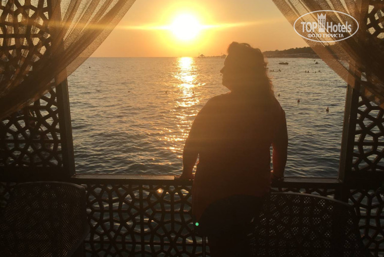 Были в отеле в начале сентября. Приехали около 10 утра, получили браслеты и карточки на пляжные полотенца. Поставили чемоданы, переоделись и пошли к морю. Вход в море ооооооочень пологий, глубина до колена на протяжении почти 30 метров. Я думаю, это будет большим плюсом для гостей с маленькими детьми. Ну а мы предпочли загорать и купаться на пирсе. Площадь пирса очень приличная, лежаков много, ВСЕГДА были свободные - и в 8 утра, и в 11-30. На пирсе помимо лежаков, есть бар со столиками, стульчиками и диванчиками. Два холодильника с водой. Бар начинает работать с 10 утра, а уже в 9.00-9.20 включают музычку, поднимая настроение отдыхающим. Спуск в воду с пирса с трех сторон, можно прыгать, можно спуститься по лесенкам. Со всех трех сторон души с пресной водой. Также с пирса можно покормить рыбок - там оборудовано два места для кормления. Мы брали на завтраке по булочке в ресторане и несли на пирс. Кормить рыбок очень прикольно - они просто вспенивают воду, борясь за кусочки булки.