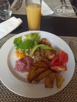 Еда - отдельная история. Всё невероятно разнообразно и вкусно! За неделю не помню ни одного повторяющегося блюда. На завтрак свежайшая выпечка, каша, сыр. Всегда зелень, обалденный хумус. Жарят яйца и омлет при вас. На обед и ужин - несколько видом мяса/рыбы, была утка, шашлыки из курицы, баранина. Сыры с плесенью, ветчина, соте из морепродуктов. Отдельный стол индийской кухни, т.к.персонал на 90% - индусы. Когда выйдете из ресторана, обратите внимание на количество наград ресторана. Впечатляет