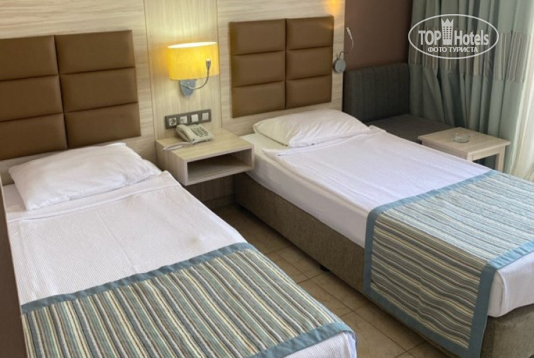 Отдыхали семьей в июне 2022г. приехали в отель в 9 утра, предупредили, что номер освободится только в 12.00, но в 10 утра уже предложили номер для заселения без всяких денежных вложений. Номер 1305, вид на море и основной ресторан-шикарный. В комнате большая двуспальная кровать и 2 односпальные, телевизор, кондиционер. Постельное меняют каждый день, доставляют шампуни и туалетную бумагу . Интернет платный 1 $ на одно устройство (подключить на 2 не получится, пробовали). Питание шикарное и для детей, и для веганов и для мужчин (пиццы, блинчики, супы, рыба, курица, индейка, говядина, сыры, колбасы, чечевица, яичница, салаты, оливки, арбуз, дыня, виноград и много много всего) . Коктейли без проблем в стеклянных стаканах носили в номер, никто ничего не говорил. Еду поначалу ( дня 3-4) тоже в тарелках приносили в номер. Но как только стало много людей в отеле, то на выходах с ресторанов стояли официанты и запрещали выносить в тарелках ( так как посуды, видимо не хватало), но отдыхающие выносили в своих контейнерах без всяких проблем. Спасибо работникам ресторанов, т. к. после экскурсии нас поздно привезли и мы опоздали на ужин + мы целый день почти ничего не ели, а работники ресторана нам вынесли огромные порции еды и не оставили нас голодными.