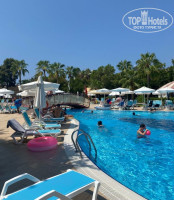 Пляж в отеле песчаный, лежаков всем хватало, они стояли и на пляже и на пирсе, рядом с пляжем ресторан где можно перекусить и выпить, а на пирсе бар с коктейлями. Спускаться в море можно и с пирса. По середине есть большие камни, по ним можно походить. Рыбок почти нет. Бассейны тёплые, горки небольшие. В обед давали мороженое, на раздаче стояло всегда 2 человека, поэтому очередей почти не было... По ощущениям казалось, что еда на территории отеля есть 20 час в сутки.