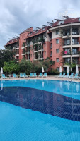 Бассейн не подогреваемый, горки работают, как и везде - пару часов с утра и пару часов после обеда. Мы в основном купались в море - оно было гораздо теплее)