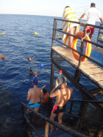 Риф хороший, рыбки есть и их достаточно, при отеле есть дайвинг центр, где за 50 долларов вы можете погрузиться на 7-10 метров с инструктором, после небольшого инструктажа. Мы же ещё для разнообразия брали морскую экскурсию, сначала была лодка с прозрачной подводной частью через которую рыбок было в принципе видно, но не очень хорошо, а вторая часть мы долго куда-то шли на небольшом кораблике, в каюте которого сильно пахло дизельным выхлопом, но наши мучения с лихвой были компенсированы прекрасным дайвингом с очень профессиональным инструктором и шикарной подводной фотосессией. Теперь про отельный пирс и зону купания, создаётся такое впечатление, что они были организованы кода отель был раза в 4 меньше. Тем кто любит долго и много просто плавать а не любоваться рифом и подводными красотами, то вам не туда. Зона для плавания минимальна, думаю это ещё обусловлено вопросами безопасности, что бы легче было вытаскивать людей во время внезапных течений, но почему такой маленький узкий и неудобный с одной тесной лестницей на которой очень часто пробка из людей, мне не понятно. В целом цель поездки достигнута – рыбки посмотрены. Ещё мой совет если вы не профессиональный дайвер берите самую обычную недорогую маску, «дорогие» в отельных и около отельных ларьках текут так же.