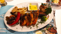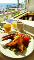 Всё основное питание проходит ресторане справа от ресепшена, раздача не большая но так как время приёма пищи довольно таки большое, то больших очередей практически не было. Единого мнения у нашейсемьи на счёт кухни нет. Дочери еда не понравилась, супругу оставила равнодушной, а мне всё понравилось, в отличие от Турции ассортимент заметно скуднее(нет огромного числа мешаных салатов с прошлого обеда), но всегда есть 2-3 вида различного мяса и всегда вкуснейшая рыба. Гарниры рис, картофель, тушёные и запечённые на гриле овощи(перец, лук, баклажаны). Выбор фруктов правда странный, всегда много свежих фиников разны сортов и иногда в привычном нам виде, гуава, невкусные апельсины и грейпфруты, бананы, редко из декорирования можно было наковырять свежий инжир. Почему не давали манго в разгар их сезона непонятно. Порадовало что не было химозных ярких напитков типа Юпи. Наливали пакетированные соки очень натуральные, мы обычно брали манго и гуаву. В отеле работает система аля-кард(рыбный, итальянский и национальный наверное точно не помню) из которых один на выбор включён в стоимость. Мы были в рыбном и итальянском – восторга нет. Всё качественно но не вау. Есть небольшой лайфхак – когда было лениво тащится в верх в главный корпус мы обедали в рыбном ресторане рядом с "пляжем", народу 0, меню итальянское(пица, паста, жаренная рыба). Пили пиво среднего качества, супруга сухое белое, дочь безалкогольные коктейли с цветными сиропами. Крепкий алкоголь отвратительного качества, можно употреблять только в коктейлях(и то не много), в чистом виде очень мерзкий. Спасли дютифришные запасы.