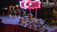 Отдыхали в отеле с 27.10.22 по 11.11.22. Повезло в погодой, уже который год в Ноябре в Турции стоит жара 26-30 градусов и практически без облачно, море в это время теплое. Кстати вода теплее если заходить с пирса, ближе к берегу воды была холоднее. Рестораны алякарт, дискотека на пирсе перестают работать 24 октября! Интернет бесплатный в лобби, но можно купить чтобы он работал на всей территории отеля, 1$ сутки на 1 устройство(раздавать его нельзя). Если захотите купить симку с интернетом, то цена в отеле 30Евро-25гб, а если дойти через дорогу до Тайм центра, то можно взять 35гб за 27 Баксов. У отеля очень удобное расположение, большой Тайм Центр в котором Wikiki в разы больше чем в Анталии, выбор гораздо побольше и народу меньше. До Анталии ходит автобус №50, проезд стоит 13 лир. Рынок приезжает по средам, чтобы его найти нужно перейти дорогу, увидите шпиль с мегафонами(который вас будет будить каждое утро в 6 утра) и много банкоматов, поворачиваете на лево и идёте километра 2. По отелю: номера небольшие, но уютные и чистые, матрас жесткий, уборка каждый день, оставите чаевые будут крутить лебедей. Мини бар пополняют только водой, чайника в номере нет. Бесплатная сауна, хамам, соляная комната и басик в СПА, записывать не нужно, работает примерно в 8 до 18-20, брать с собой нужно туда пляжные полотенца, т.к. там вам ничего не выдадут(полотенца кстати брать и сдавать там же в СПА). Территория: не большая, но на ней есть все что нужно, бассейн, горки для взрослых и для детей(вода в бассейне ледяная, чтобы залезть нужно либо быть ребенком либо много выпить). 4 бара:бар в лобби работает до 24, не далеко от амфитеатра бар работает до 2 ночи, есть бар недалеко от моря, бар на пирсе(только коктейль мохито, пива нет). Еда: вкусная, фрукты(арбуз, дыня, мандарины, виноград, слива, гранат и тд. с завтрака до ужина), на ужин давали Тунца раз в 2 дня. Море продукты(креветки и крабы мы за 15 ночей отдыха не видели не разу, но говорят что давали их в сезон раз в 2 недели). В бинго не играйте! (призы 10 минут, хамам, 10 минут массаж, 1 фото и шампанское местный брют без газов, пить невозможно и лукум). В целом отель могу рекомендовать для семейного отдыха, для отдыха с детьми(хорошая детская анимация, делают какие-то поделки, клеют наклейки на майки, аквагрим и тд. все это днем, а вечером еще и награждают самых активных детей). Анимация одинаковая каждый день, музыка тоже. На письмо из Tophotels на ресепшене не обращают внимание, так что можете не распечатывать.