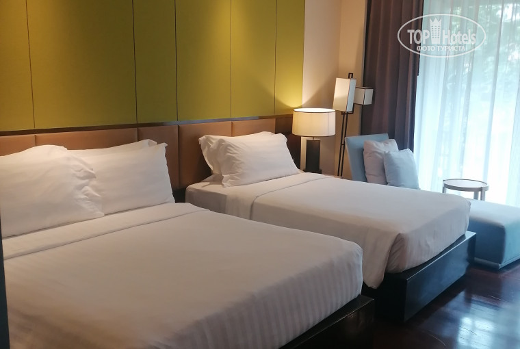 Номер: просторный, неплохой, 2-спальная кровать, 1,5-спальная кровать, кушетка, стол, телевизор, холодильник, чайник, чай+кофе+сахар+2 бутылки воды в номере (пополняется ежедневно, входит в стоимость). Остальное наполнение платно и для системы All Inclusive тоже - вычтут из депозита, если пользовались (пиво, виски, текила, прохладительные напитки, чипсы, орешки, вода). Стаканы, фужеры, чашки - всё есть. Сейф бесплатно. В прихожей шкаф, вешалки. Душ, санузел, раковина - всё работало исправно. Полотенца: 3 для тела, 3 для лица, для ног, плюс маленькие для лица, рук. Пляжные полотенца кладут в номер. Обменять их можно либо, оставив в номере, либо заменить у персонала на пляже (вообще, обмен с пляжными полотенцами не очень удобен, нужно все время искать персонал). Зубные щётки+пасты, станок, набор нитки+игла, пилка для ногтей, шапочка для душа, ватные палочки, шампунь, гель для душа, мыло - пополняется по мере использования. Балкон достаточно большой: у нас был с двумя скамейками и табуретами, столиком, сушилкой для белья. Вид на бассейн и тайский ресторан. Номера немного уставшие, но это нельзя назвать минусом отеля.