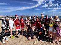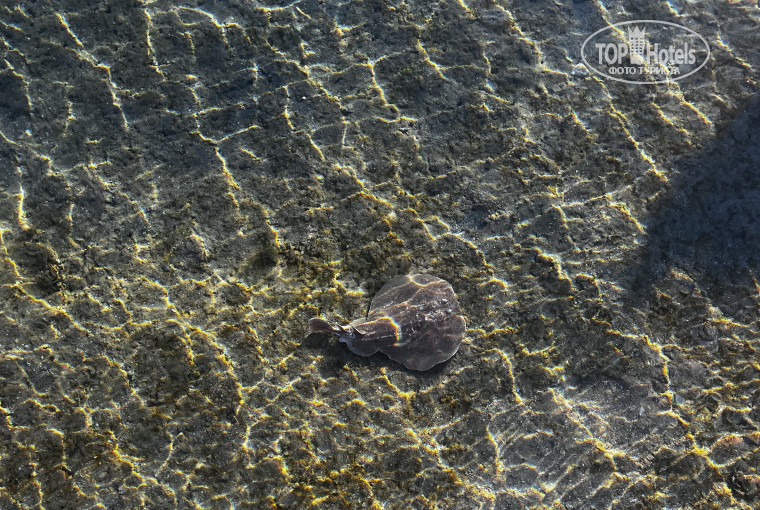 Пляж. Пешком минут 5, не больше. Есть автобус, но мы в основном ходили пешком. Пляж небольшой, песчаный, вход плавный, около пирса много рыбок. Рифа нет! Есть небольшой слева от пляжа 100м, рядом у соседнего отеля. Большой риф справа от пляжа 500м, территория отеля Барон. Многие туда ходят посмотреть на риф) пускают без проблем! Бар на пляже работает до заката!) есть туалет и душ! Так же на пляже есть бассейн и детская площадка! Анимация утром и после обеда! Лежаков всегда хватало, по утрам не бегали занимать))