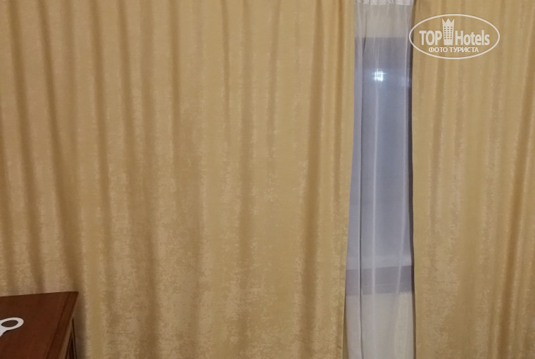 --комната. Думал, что анахронизм в виде тройников в одной розетке, давно уже исчерпан. А нет. Тут пожалуйста. Иначе некуда включать все потребители (два обогревателя, чайник, телевизор, холодильник и так далее). Хорошая слышимость с дороги через старые (клеены\переклеены скотчем от сквозняка) окна. Очень хорошая слышимость соседей. Перегородка, такое чувство, что сделана из бумаги, т.е даже обычный негромкий разговор хорошо слышен. Если вам не повезет с соседями, ну вы поняли.. Шторы аля СССР, которыми трудно перекрыть весь проем небольшого окна, гардина держалась на честном слове. Матрасы какие-то с дефектами—на фото думаю видно будет. Подушки не удобные.. Нет никаких дополнительных источников освещения (прикроватные или настенные),кроме одного потолочного светильника.