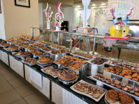 Ресторан работал только на втором этаже , видимо из за нехватки гостей , отель заполнен не полностью , много свободных номеров . Ассортимент блюд перечислять не буду , всего много , но лично я до гарниров , салатов ,хлебного прилавка сыров , колбас так и не дошла . А что 2 раза были крабы и 1 раз криветка с кольмаром на шпажке сообщаю.В пятницу сделали ещё 2 огромных прилавка при входе со стороны гриля на площадке с их национальной едой ( которую я даже не попробовала ) .Мы решили что это в честь выходного , ведь у них выходные пятница и суббота . Алкоголь там какой- то не правильный , вообще не пьянит , пробовала виски , ром .Дома и с шампанского дурею .Еще у меня 2 марта ДР был , посетили ресторан Ливанский . Украсили стол сердцем из цветочков и вынесли тортик с песней про День рождения .Выбора блюд нет , что вынесут , то и есть будете . Правда алкоголь приносили по нашему желанию , но в стаканах . (По желанию на ДР или любое другое торжество можно за 10 $ у ребят выдающих полотенца заказать украшение цветами навеса ( грибка ) , прикольно .У нас этого не получилось т.к.уезжали на экскурсию ).Вот в Итальянском дают одну пицу и даже без напитков .Хотя ей же днём можно объестся. Ну да ладно , не за этим ехали .Море , море - это в не всяких похвал . Коралловый риф есть , но восхитительным я его не назову ( видела лучше ) .Здесь начиная от берега он уже почти мёртвый , а люди всё на него встают и встают, а им свистит и свистит охранник . Не понимаю как взрослый человек не может понять , что вставая губишь такую красоту .Рыбы плавают красивые , для меня новинкой стал Наполеон , он не раз приплывал к понтону и плавая нам позировал , рыба Синяя . И ещё стая больших рыб ( около метра длиной ) название Молочная , они окружали мелких рыбешек в кольцо , хищники похоже и когда они плавали у них из воды мелькал плавник , как у акул . Не до съёмки мне было , и только когда их ребята сказали что они не опасные , я на них плавала смотреть. В предыдущих отзывах ругали понтон .Конечно всё новое лучше , тут он ушатан ,но не критично и спасатель всех за ручки водит по нему .Пляж большой , лежаки есть всегда . Но вот на них надо бы обратить внимание отельерам .Сломаны почти все подножки которыми регулируется высота спинки. В первый день нашего прибывание на пляж в бар вынесли торт и угощали клубникой облитой шоколадом на шпажке .Вкусненько .Коктели не понравились , мешают всё подряд .Спросили делают ли Пина Коладу , сделали в баре на ресепшн . .Удивили .Ну что на это можно сказать , у египта своя Пина Колада .Много бассейнов , плавала в двух , чистые придраться не к чему .Аквапарк зашли один раз перед закрытием , муж прокатился , я не решилась .Далее анимация : при нас одни уехали , другие заехали .Их так много , не сосчитала . Ребята работают по их силам .Был волейбол , зарядка , аквааэробика в море , дартс ( к нашему отъезду осталось 2 сломанных дротика из 4 и доска без последнего круга ( который соответствовал 1 очку ).Вечером с детьми , а затем шоу и это в 21.30 , еле доживали . Из 8 ночей , 3 раза мисисы и мисы , 2 фаершоу , танец живота и крутил юбку Танура , топтание на стёклах и гвоздях .6 марта устроили в бассейне у моря пенную затею т.к.вечеринкой назвать не могу , было 3 часа дня .Был торт и коктели .Экскурсии брали у ТО . Гид Yehia Ramadan (Яша) , на встрече продал нам морскую с дайвингом ( мы не собирались погружаться ) узнали только на кора