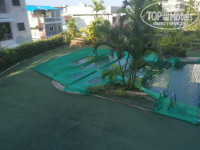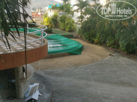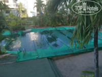 Брали этот отель из за наличия территории с бассейном, по факту работает только бассейн на втором этаже нового корпуса. Бассейн на территории накрыт сеткой, вода превратилась в болото, кучи лягушек, которые орут всю ночь, бар у бассейна разбит, территория не обслуживается и захламлена. Ресторан на крыше с красивым видом на море, тоже разбит и не функционирует.