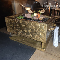 4.Египетский. Были там во второй вечер нашего отпуска. Зашли заранее: узнать меню для вегана, нам его даже предоставили, но по факту для мужа предложили «блюда от шефа» (овощи гриль,картошку-фри и хумус - как-то очень грустно), для меня принесли мясо на переносном мангале - красиво, эффектно и, действительно, очень вкусно. Но вот с обслуживанием там оказалось все совсем грустно, персонала вроде много, но работали как-то не слаженно, не знаю почему, у нас взяли заказ на напитки, как только мы пришли, а по факту нам уже принесли закуски и горячее, а напитков все нет, одна из ассорти закусок оказалась для меня очень острой и я «буквально ломанулась к бару за водой» -мне путь преградил официант: " Мадам, вернитесь на место,сейчас все принесем". Принесли, но тоже не сразу, я умяла целую лепешку, чтобы заесть остроту. Итог: муж голодный, по основному блюду для меня отлично, обслуживание даже оценивать не буду, сбежали мы оттуда быстро, больше не ходили.