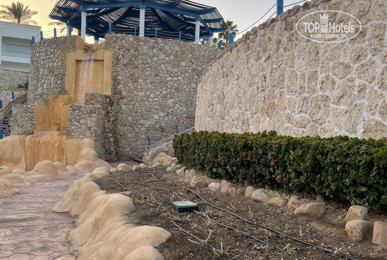 Бассейн с подогревом был один внизу у кальмари ресторан --ооочень маленький где купались мамочки с детьми и пенсионеры -без музыки, без всего... Дорога к морю не особо красива, вид средний, на территории мало цветов когда мы там были. Много лестниц (не совсем понимаю что там делают пожилые...). В море поплавать с пляжа не удастся. Коралл вроде приличный - была там и черепаха, но у нас не было маски.
