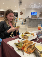 Были в ресторане аля карт -кальмари , причем нас записали сами сотрудники - подавали креветки, крабы, все было очень вкусно и торжественно. У меня случился инцидент -я поранилась о шип краба и персонал тут же позаботился о моем пальце -спасибо им огромное!!)))