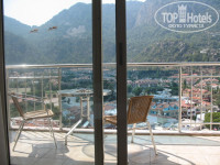Один фасад отеля обращен к Турунчу, с этой стороны он имеет 11 этажей (Этаж L – холл и 10 жилых). Из окон этого фасада вид открывается на сам посёлок, горы и пляж с кусочком моря.
