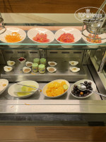 На завтрак свежевыжатые соки: апельсиновый, клубничный и из гуавы. Игристое также в наличии. Большой выбор выпечки, есть каша, йогурт, блюда из яиц, салаты. Стандартный набор.
