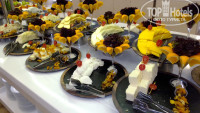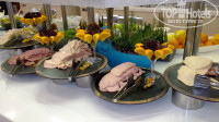 Кстати о кухне: ежедневно овощи на гриле, рыба :сибас, лосось, форель, и тп, каждый день чередуется. Очень порадовал диетический кластер: гречка, говядина, картофель, и т.п. приготовлены абсолютно без специй, молоко всегда, самое дорогое, которое видел в супермаркете, рядом с отелем. Сыров, на завтрак насчитал 14 видов. Супы ,случался овощной борщ и русский суп (куриный с самодельной лапшой)...