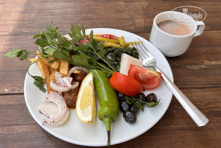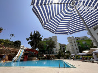 Выбрали как самый дешевый вариант размещения между другими отелями. С одной стороны номер отличный, чистый, свежий. Бассейн был спасением для досуга. Море минут 15 пешком (ходили вечером, пляж справа очень красивый), но мы купались еще дальше - ездили на Клеопатру. Персонал ресторана вежливый, однако питание самое скудное из всего что я видел. Чувствуется что кухня экономит на всем. Маргарин вместо масла. Соевые котлеты в ограниченном количестве. Можно опоздать и не найти ничего поесть. Пиво было кислое, но безболезненное, вина порошковые в стандарте для турции и водку мешают на выбор, кола , фанта спрайт. Кофемашина и юпи соки сам наливаешь. На ресепшене просто беда с администраторами, не умеют работать с гостями.