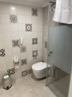 В санузле по 3 флакончика шампуня, геля для душа, кусочек мыла, ватные палочки и диски, шапочка для душа, туалетная бумага в достаточном количестве, фен (слабоват для прически, но подсушить волосы хватает), есть подставка для маленьких детей (очень удобно). Хорошая сантехника, все чисто, аккуратно. Единственное, что очень смущало, это наличие в санузле вместо двери прозрачной калитки (по-другому не назовешь, «респект» проектировщикам и дизайнерам) с тонировкой в средней части, она плотно не закрывалась, замка нет, щели между проемами, поэтому в туалете не уединишься. Писали про плохую шумоизоляцию, мы не заметили, повторюсь, может повезло с соседями. Уборка номера была разная в зависимости от сотрудника, в первые дни убирал парень (было чисто, все менялось), потом стали убирать женщины, и было по-разному, иногда забывали поменять полотенца, положить туалетную бумагу, но уборочная тележка практически всегда стояла во дворе и можно было подойти и все поменять самому или позвонить на ресепшен и тут же все приносили).