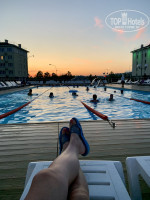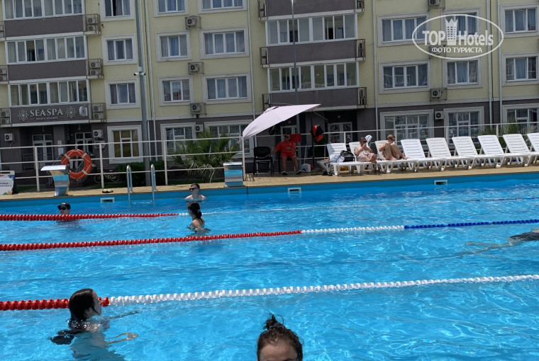 Бассейн в семейном квартале, вода теплая. Но его явно недостаточно на три квартала, много детей.