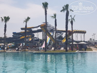 Территории у отеля нет. Территория - это само здание, между морем и зданием бассейн. Справа взрослый аквапарк, детский аквапарк, детская комната. Бассейн отличный. В бассейне есть зоны релакса. Вход в бассейн по лестницам. Возле аквапарка вход по ступенькам. Слева бассейн с белым холодным песком "Мальдивы". Между бассейном и морем 2 бара и 2 ресторана а-ля карт ( 10 евро с человека). Вот и вся территория.