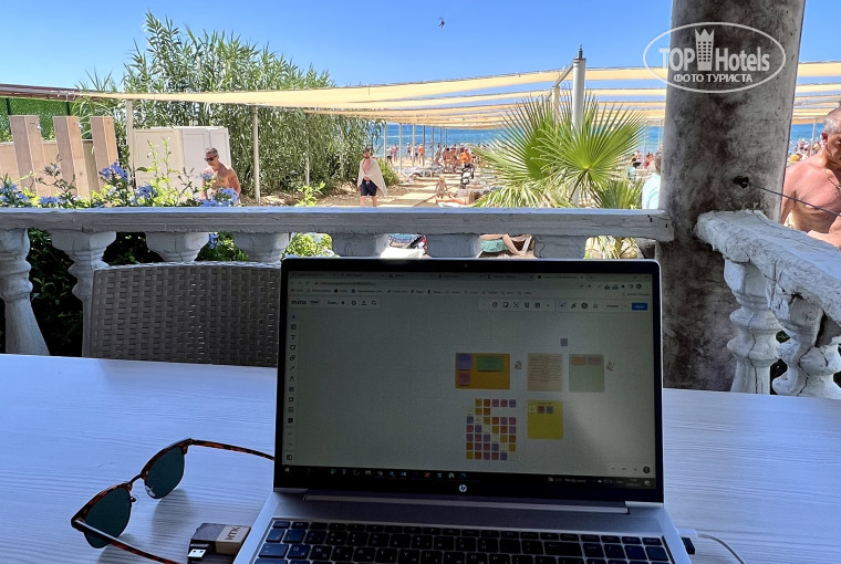 В номере в бунгало отличный интернет, у бассейнов, где кидс клуб, тоже. Но нет помещения, чтобы комфортно сидеть за столиком нормальной высоты и работать, только в номере или у бассейна.