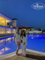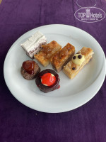 Питание. Завтрак, обед и ужин в главном ресторане. Еда довольно разнообразная, курица, индейка, рыба, сосиски, много овощей сырые, печеные, тушеные, на гриле, каждый день 2 новых супа, большая разновидность сыра, оочень много, вкуснейшие пирожные, турецкие сладости, джемы штук 10 видов, шоколадная и арахисовая паста, мюсли, хлопья, фрукты (арбуз, дыня, апельсины, мандарины, слива, абрикос, что-то еще)), на ужин на гриле готовят разную рыбу и шашлык. Не буду перечислять весь шведский стол)) Все вкусно. Пообедать еще можно на пляже в снек-баре, пицца, бургеры, нагетсы, картошка фри, по-деревенски ломтиками, овощи, фрукты. В беседке рядом с пляжем пекут турецкие лепешки с сыром, картошкой и шпинатом. Был один ужин в аля-карт, на выбор стейк из телятины или стейк из красной рыбы. В любое время можно выпить кофе, вкусное мороженое в вафельных стаканчиках с 12 до 16.