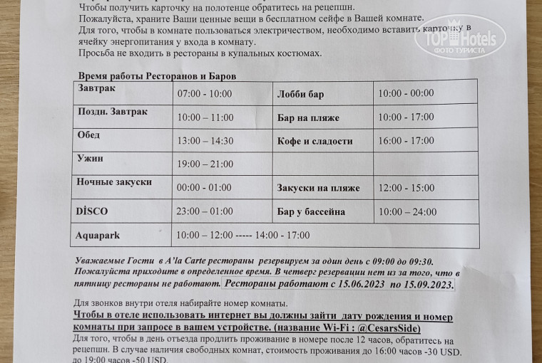 -ресторан а ля карт - на ресепшине с 9-00 до 9-30 можно записаться в ресторан итальянской или турецкой кухни,