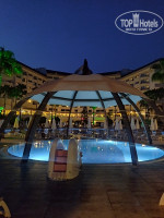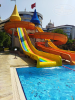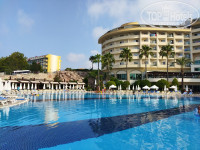 Территория большая, зелёная, ухоженная.Бассейн огромный, лежаков полно. Есть детский бассейн с горкой под навесом и горки с бассейном для детей постарше и взрослых (работает с определенного времени).У бассейна тоже бар с алкогольными и безалкогольными напитками, водой, холодным кофе, чай, холодильники с во дой, пепси и т. д.,работает с 10.00. Там же с 12.00 кажется стоит холодильник с мороженым в брикетах. Мороженое в вафельных стаканчиках с выбором вкуса было пару раз и в основном ресторане. В этом же баре часов в 5 готовят вафли, начинку выбираете сами(объедение).