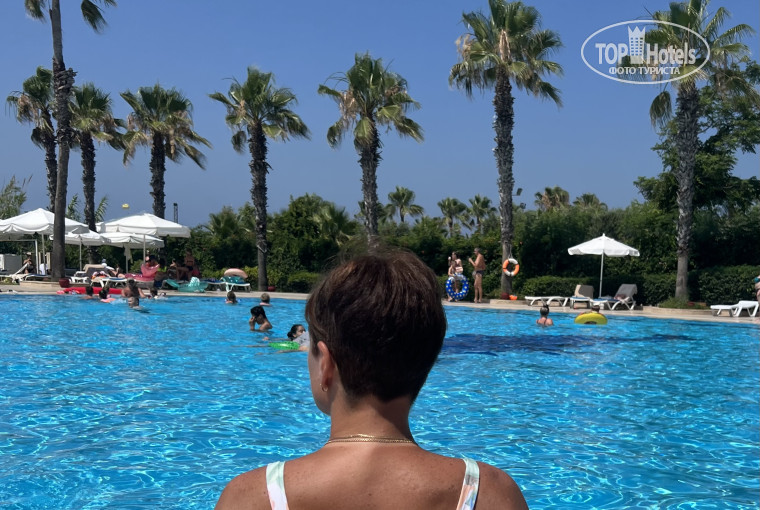 Территория красивая и ухоженная,главный большой бассейн,где проходит самая тусовка,рядом бассейн с горками ,мы в основном отдыхали на море и бассейне рядом с ним,с лежаками проблем не было,полотенца выдают на обмен карточек и меняют каждый день,море теплое и прозрачное,несмотря на песчанное дно,единственное не глубокое,до буйков дошла пешком 😃😃😃,мы прогулялись вдоль моря по пляжной линии других отелей,наш самый чистый ❤️❤️❤️.Аниматоры замечательные,шоу красивые,аква-аэробика,степ,танцы,стрельба,волейбол,дартс,водное поло-развлечения на любой вкус 🤗🤗🤗.Отдельная благодарность замечательному отзывчивому человеку по работе с гостями-Татьяне,благодаря ей покушали в обоих ресторанах а-ля карт-Турецком и Итальянском,поможет решить любой вопрос,очень чуткий отзывчивый человек,только благодаря ей,получили ценную вещь,забытую в номере уже здесь в Москве☺️☺️☺️.