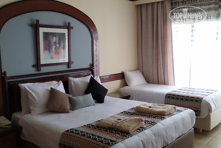 Отдыхали в данном отеле в августе 2022. Прилетели из Минска около 12.00. Отель расположен рядом с аэропортом. Сотрудники отеля одели нам браслеты, предложили сходить на обед. Заселили в номер после 15.00. Мы впервые столкнулись с такой нерасторопностью. Отель не новый, но после реконструкции. Номер комфортный, чистый, светлый. В номере бесплатный сейф, ЖК телевизор, фен, гель для душа, шампунь, мыло. Уборка регулярная, без нареканий. Питание хорошее, с чувством легкого голода выходить из-за стола не получалось. Отдых прошел без пищевых отравлений, для Египта это очень актуальный вопрос. Территория отеля ухоженная. За территорией отеля в пешей доступности как таковой инфраструктуры нет. Отель находится на второй линии, но это не доставляет абсолютно никакого дискомфорта. До пляжа минут 7 прогулочным шагом. Регулярно курсирует шаттл-бас. Пляж общий с отелем SUNRISE 5*, который находится на первой линии. Пляж не очень большой, но всегда были свободные места. Понтон короткий. Для меня самый главный плюс данного отеля - это коралловый риф!!! Сноркелинг был незабываемым!!! В правую сторону от понтона чудесные бухты с белым песком, а в левую изумительный коралловый сад. Все 10 дней был желтый флаг. А это тоже огромный плюс, и весьма актуальный вопрос для Шарма. Хочу предупредить, что песчаного пляжа в отеле нет, вход в море с понтона, где сразу глубина. В целом, отдыхом мы остались довольны, отель рекомендую для любителей подводного мира Красного моря. Спасибо работникам отеля за чудесный отдых!!!
