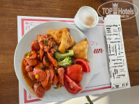5. Еда. Если вы предпочитаете вегетарианское меню, то отель вам подойдёт. Последние 3 дня перед отъездом, когда был большой заезд туристов, мы питались овощами, рисом и макаронами, потому что мяса нам просто не доставалось. Не знаю, как кухня рассчитывает количество еды, но через полчаса после начала ужина, который длится 2 часа, мяса в столовой нет. Один и тот же гарнир вы будете есть 2-3 дня. Картошка фри с каждым днём была всё более зажаренная после каждого разогрева. За неделю 1 раз нам достались куриные наггетсы и шницель. Поэтому детям и избирательным в еде будет сложно. С утра еда чуть лучше. Всегда есть различные булочки, варёные яйца, хлопья, мюсли и т.д.